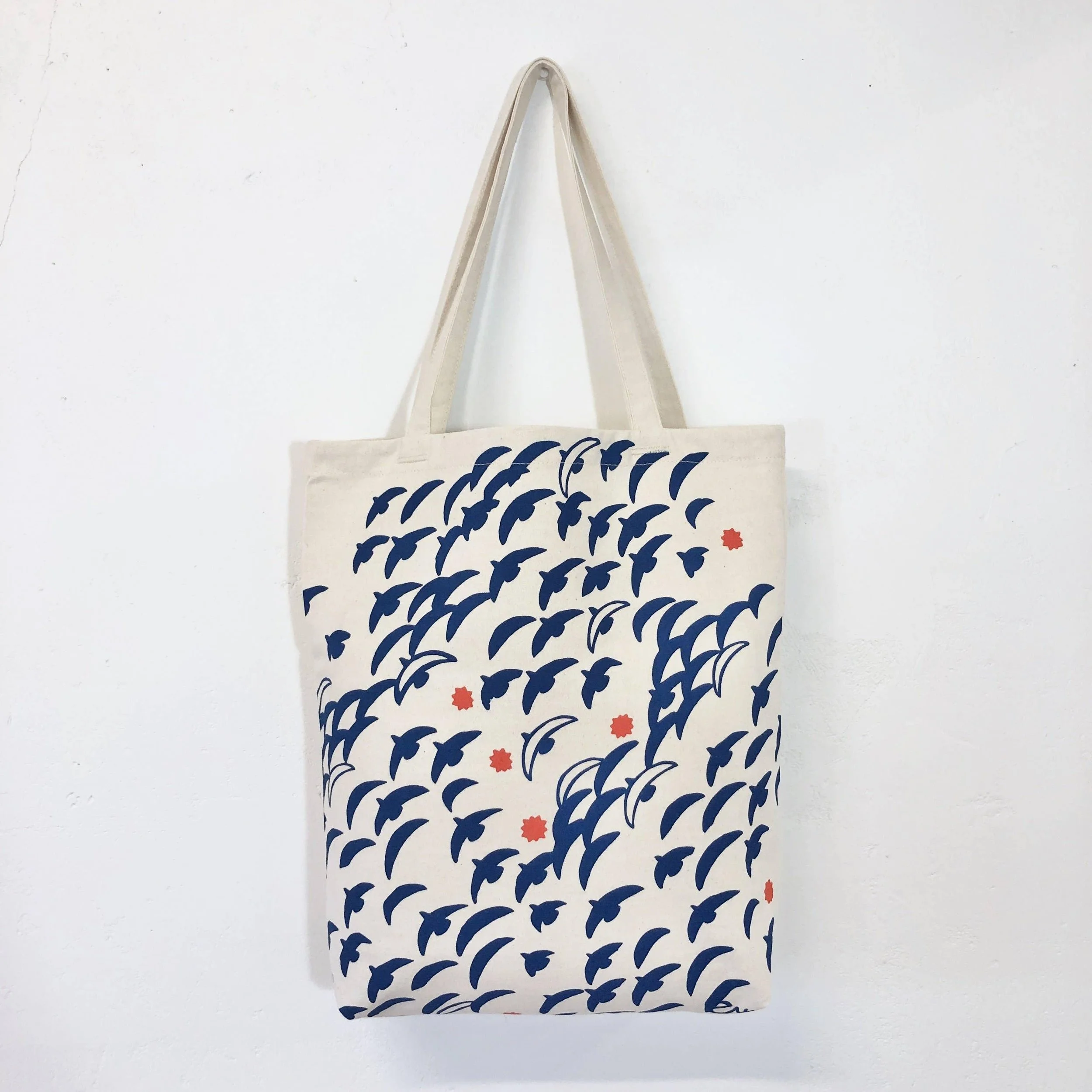Our carry all tote bags are super simple and truly can carry it all. Hand printed and sewn in our studio in maine. Served with attention to detail to ensure a long rugged life.